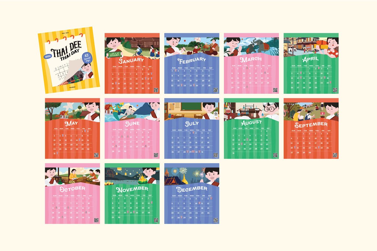 Thai Dee Thai Day is a calendar designed to encourage greater attention toward overlooked Thai days among youth. While days like Songkran remain widely celebrated, many others are slowly being forgotten. This project shines a light on those lesser-known days through the use of AR technology. Thai Dee Thai Day invites young users to scan, explore, and reconnect with Thai culture as part of their daily routines — month by month, right from their desk.